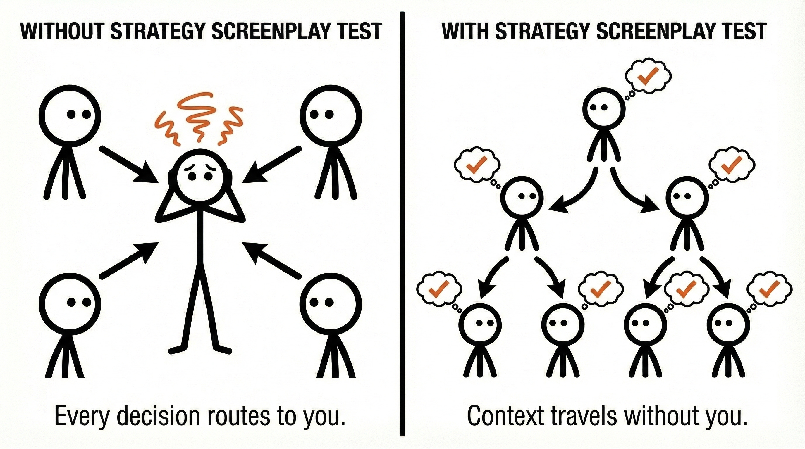 A spoken test of whether your strategy can be executed without you directing every scene.