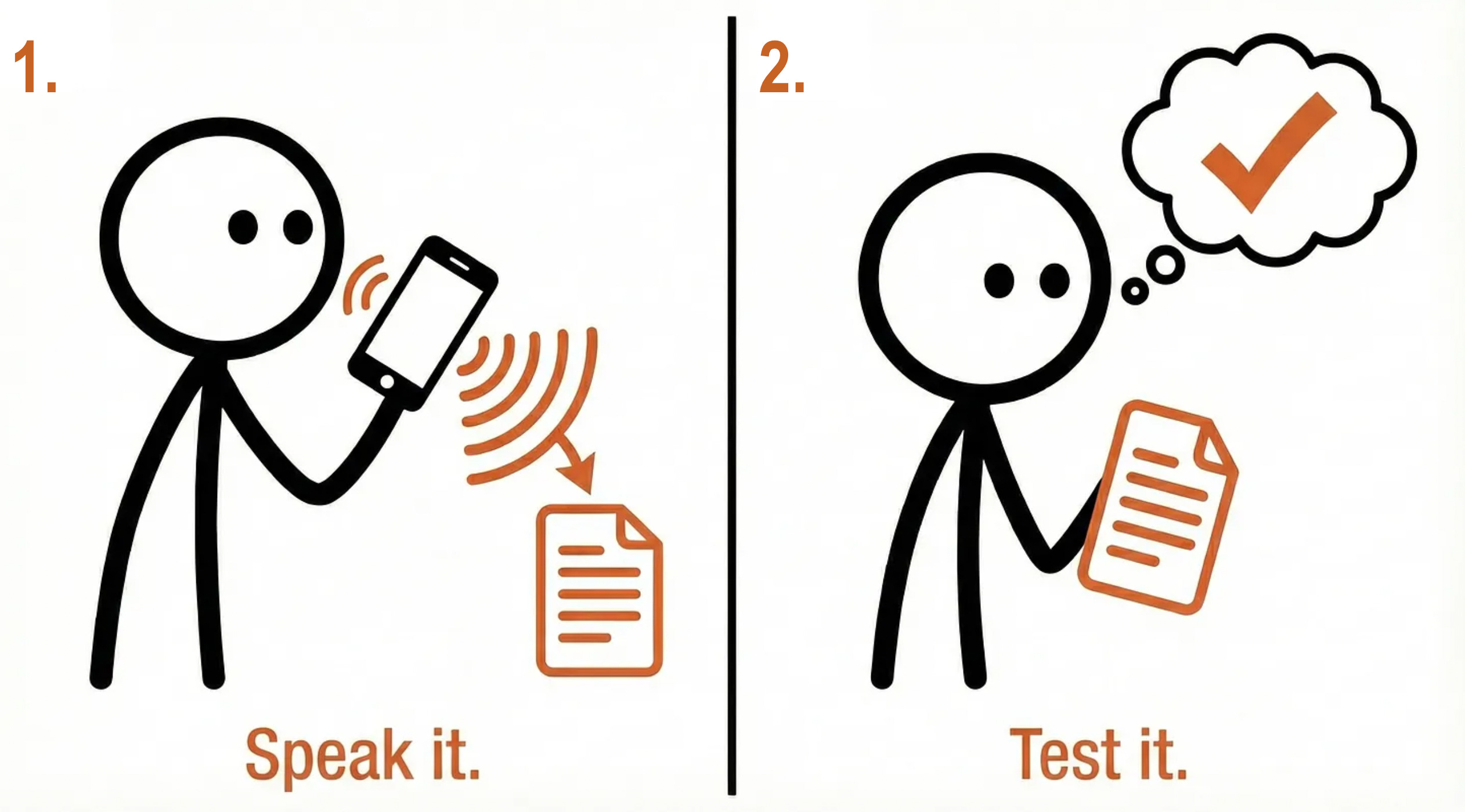 Speak it. Transcribe it. Test it. Iterate until it’s executable.