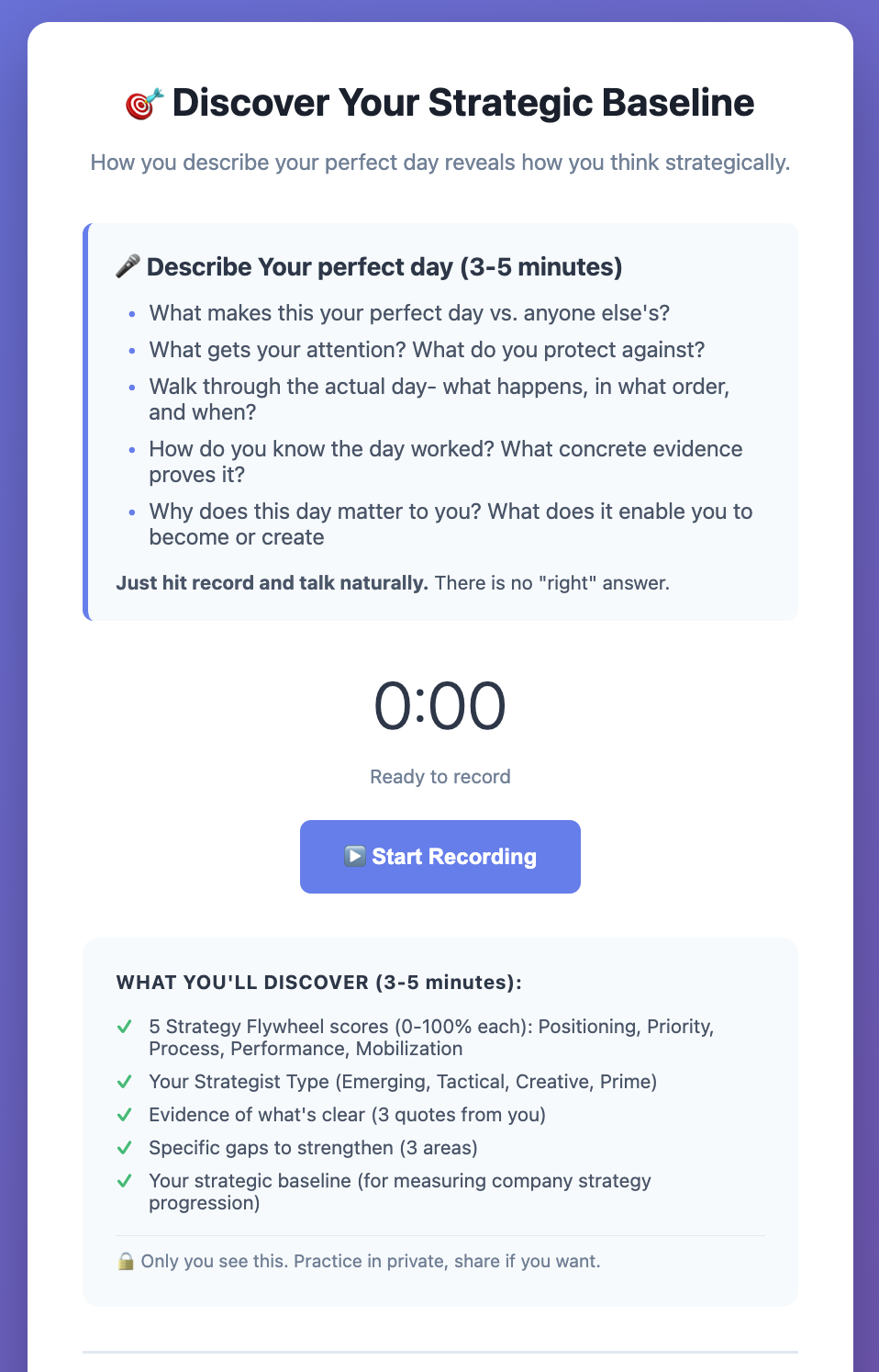 Record your Perfect Day, get your 5-element strategic baseline, see your pattern.